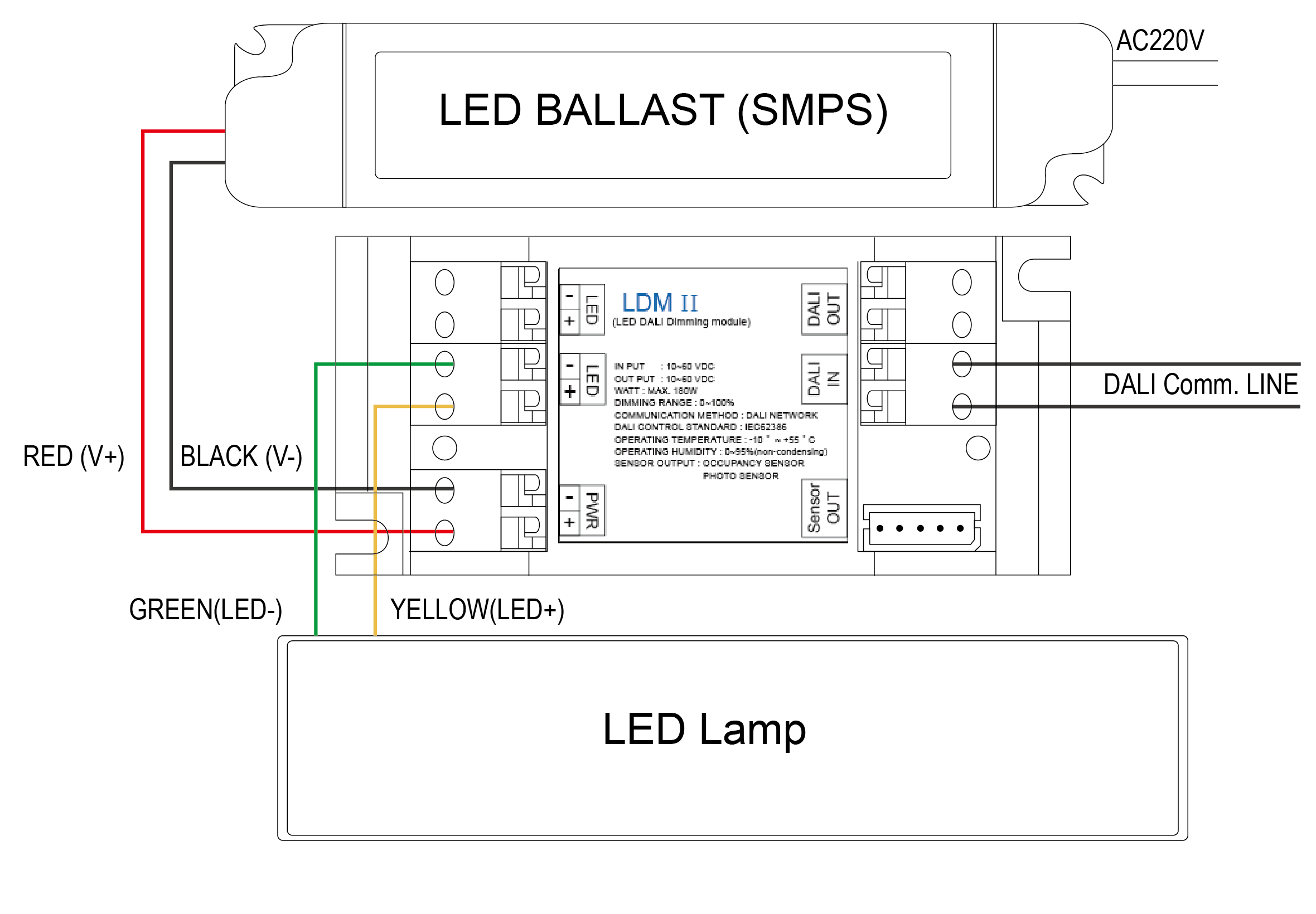 LED DALI Module-2(LDMII)는 기존 LDM시리즈 보다 한단계 업그레이드 된 제품이다. 이 LDM-2는 기존 LDM시리즈와 마찬가지로, LED등기구의 ON/OFF 및 Dimming제어를 해주는 장치이며, DALI 프로토콜에 의한 통신으로 DALI Master에 최대 64개까지 연결되어 좀 더 다양한 연동제어가 가능하도록 기능이 업그레이드 되었다.