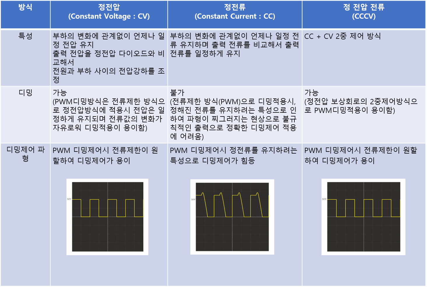 5. 디밍제어에 따른 정전압 및 정전류 방식의 비교