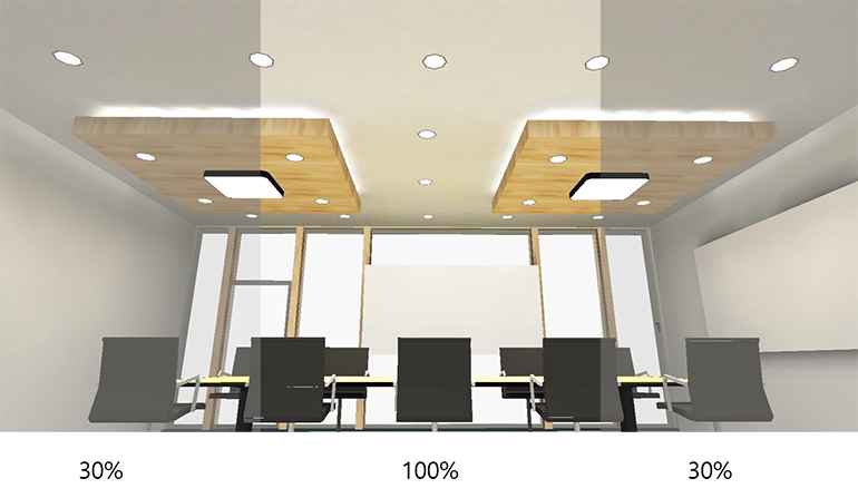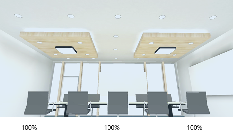 하나의 단일 조도 센서에서 감지 된 조도로 여러 조명 제어 릴레이를 제어 할 수 있습니다. 대부분 조도 센서로 창 영역을 제어합니다. 이 조도 센서는 조도 설정에 따라 해당 조명 제어 계전기를 제어하고 창 쪽에서 조도를 모니터링하며 조도 값을 측정하여 중앙 모니터리 PC 에서 조도 값을 표시 할 수 있습니다.