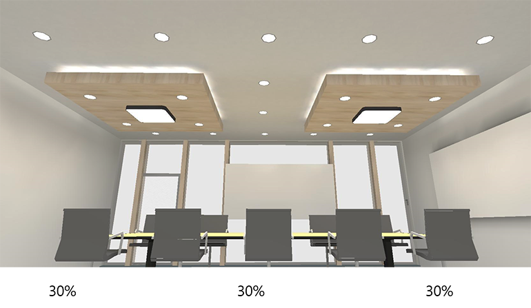 또한, 각 구역마다 조도 센서와 재실 센서가 제공되어 적절한 제어를 수행하여 에너지 절약 효롸를 얻을 수 있습니다.