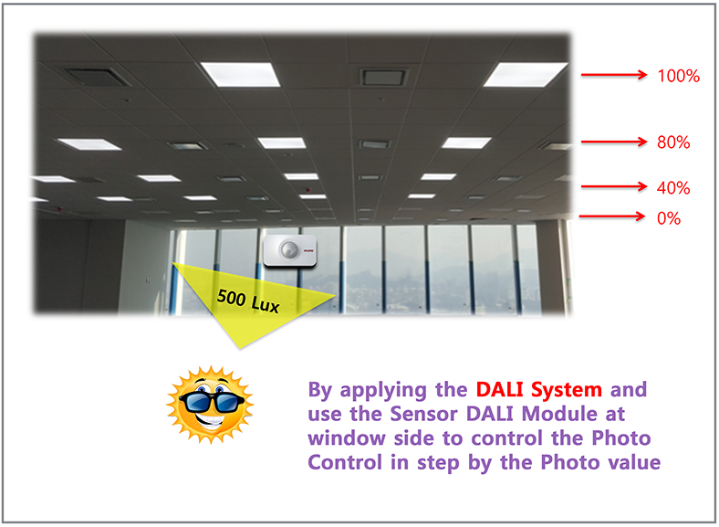 …By the one DALI-PH Sensor, the 64 EA. of LDMs can be controlled for the Photo Control.