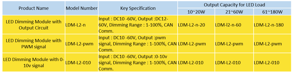 …출력단의 종류 : Normal Type은 LED등기구로 바로 연결되는 모듈이고, SMPS(LED Driver)에 PWM과 0-10v Signal을 주는 모듈로 구분된다.
