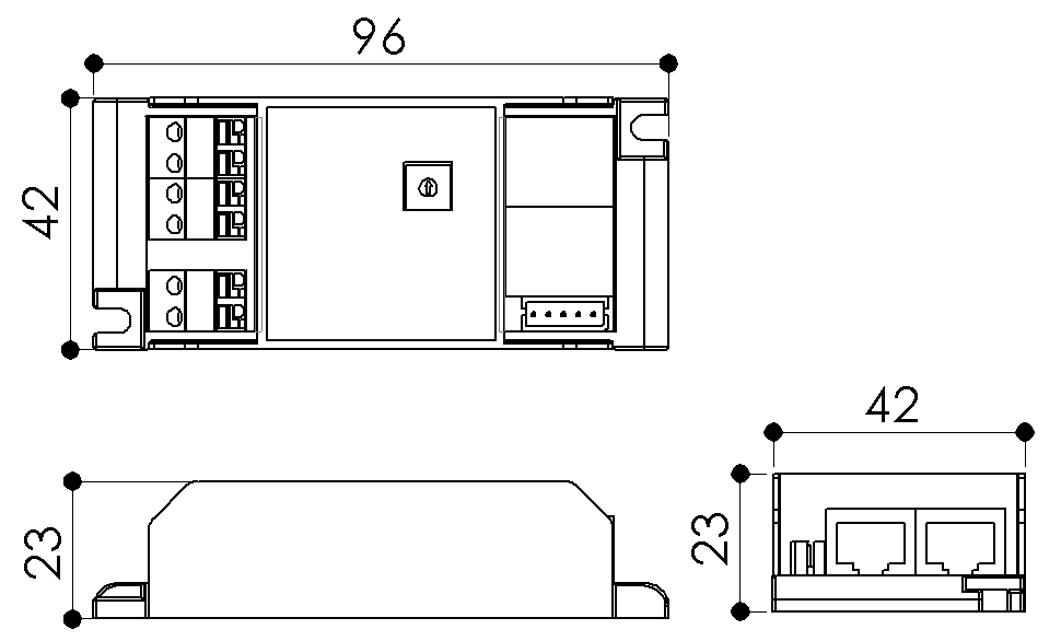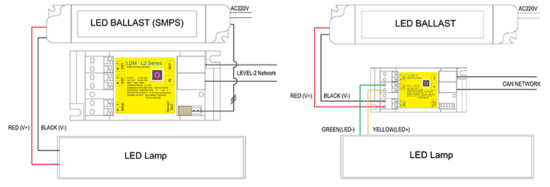 RLCM에서의 LDM(LED Dimming Module)은 최대 32개 까지 연결되어 각 LED조명 내에 설치 되어, LED조명을 Dimming 및 On/Off 제어한다. 프로그램 설정은 IGS Touch Switch 또는 STS에서 설정한다. LDM-L2 Series는 출력단의 종류에 따라, 여러가지 형태로 구분되어 있다.