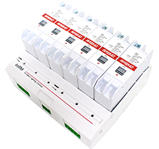 …현장 수동 조작용 ON / OFF 스위치를 장착한 20A Latching Relay 들을 릴레이 보드에 별도 케이블 없이 Din-Rail 형식으로 부착 가능.